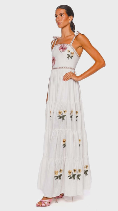 Tara Embroidered Tie Shoulder Maxi Dress