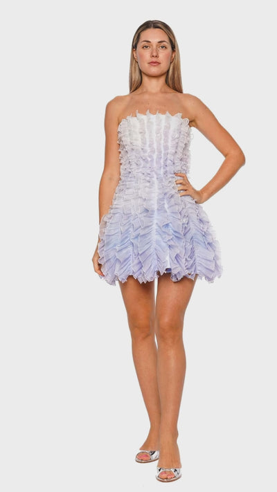 Temperance Blue Ombre Frilled Strapless Mini Dress