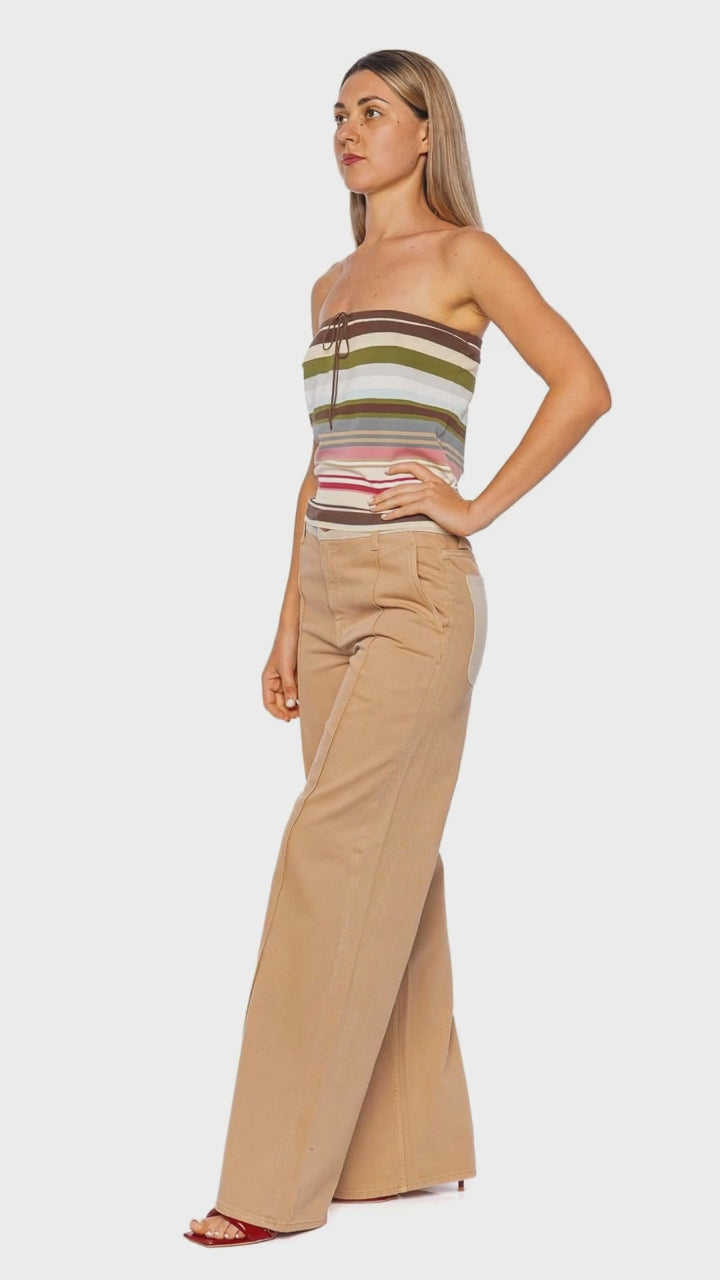 Non-stretch jeans featuring a relaxed fit elevated with center-seam detailing and a wide leg silhouette.