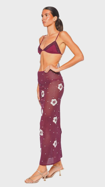 Treasure Hibiscus Applique Knit Maxi Skirt