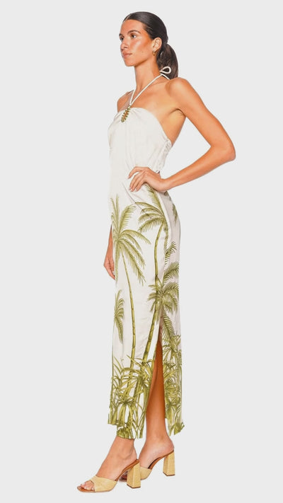 Una Cancion Palm Halter Maxi Dress