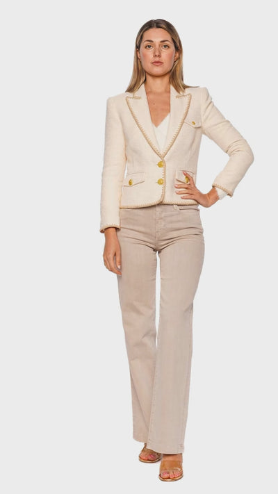 Discover the epitome of sophistication with this Wylla Structured Blazer, crafted in a luxurious ecru biscuit hue. The tailored design features a structured silhouette that exudes class and confidence, making it a perfect choice for both professional and upscale events. The exquisite texture and immaculate tailoring enhance the blazer’s timeless appeal. Pair it with a fitted pencil skirt or sleek trousers for an irresistibly polished look.
